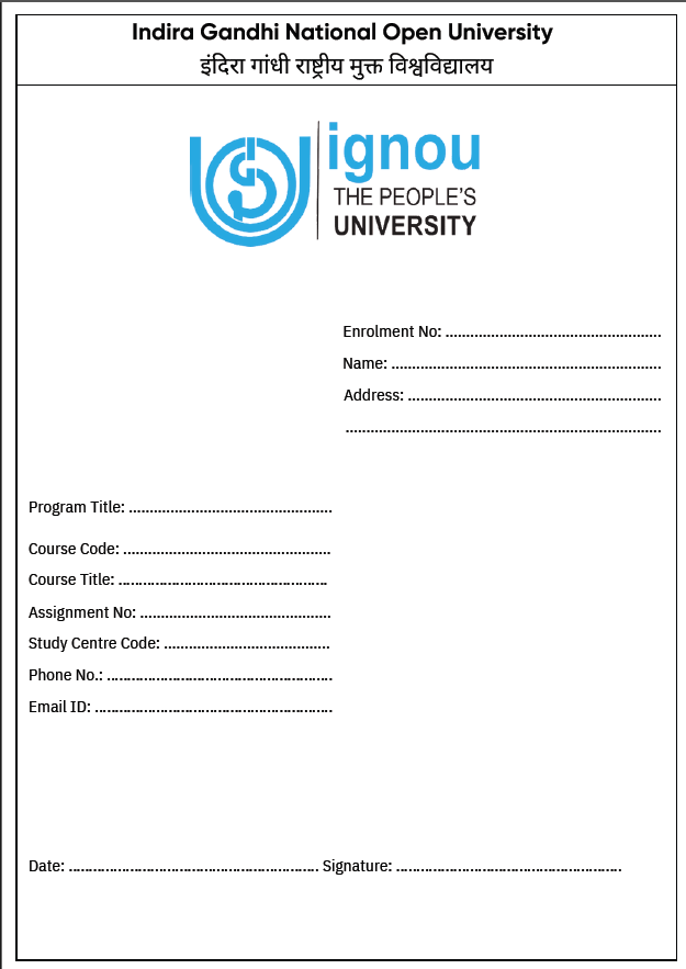 IGNOU Assignment Front Page PDF Download
